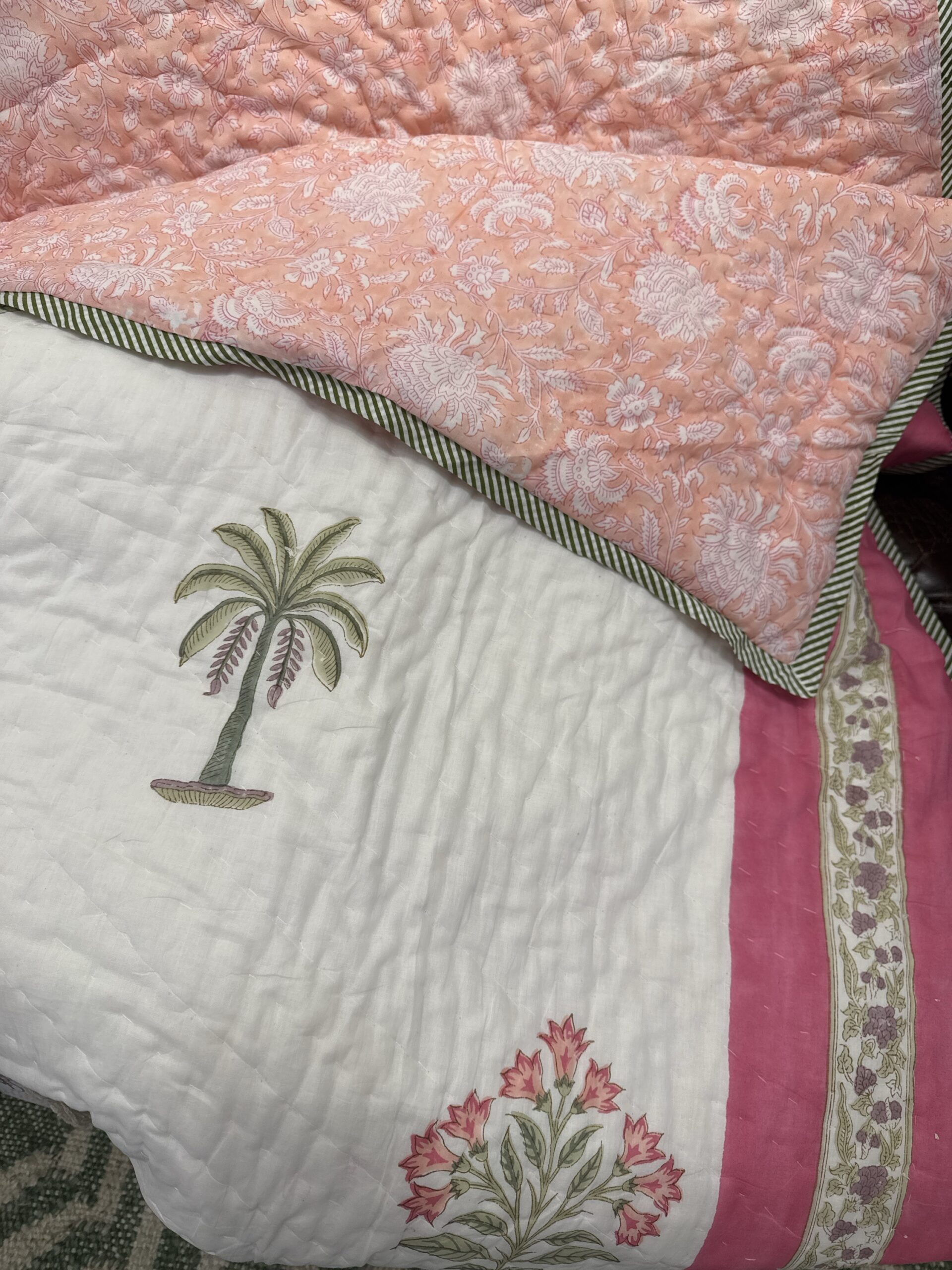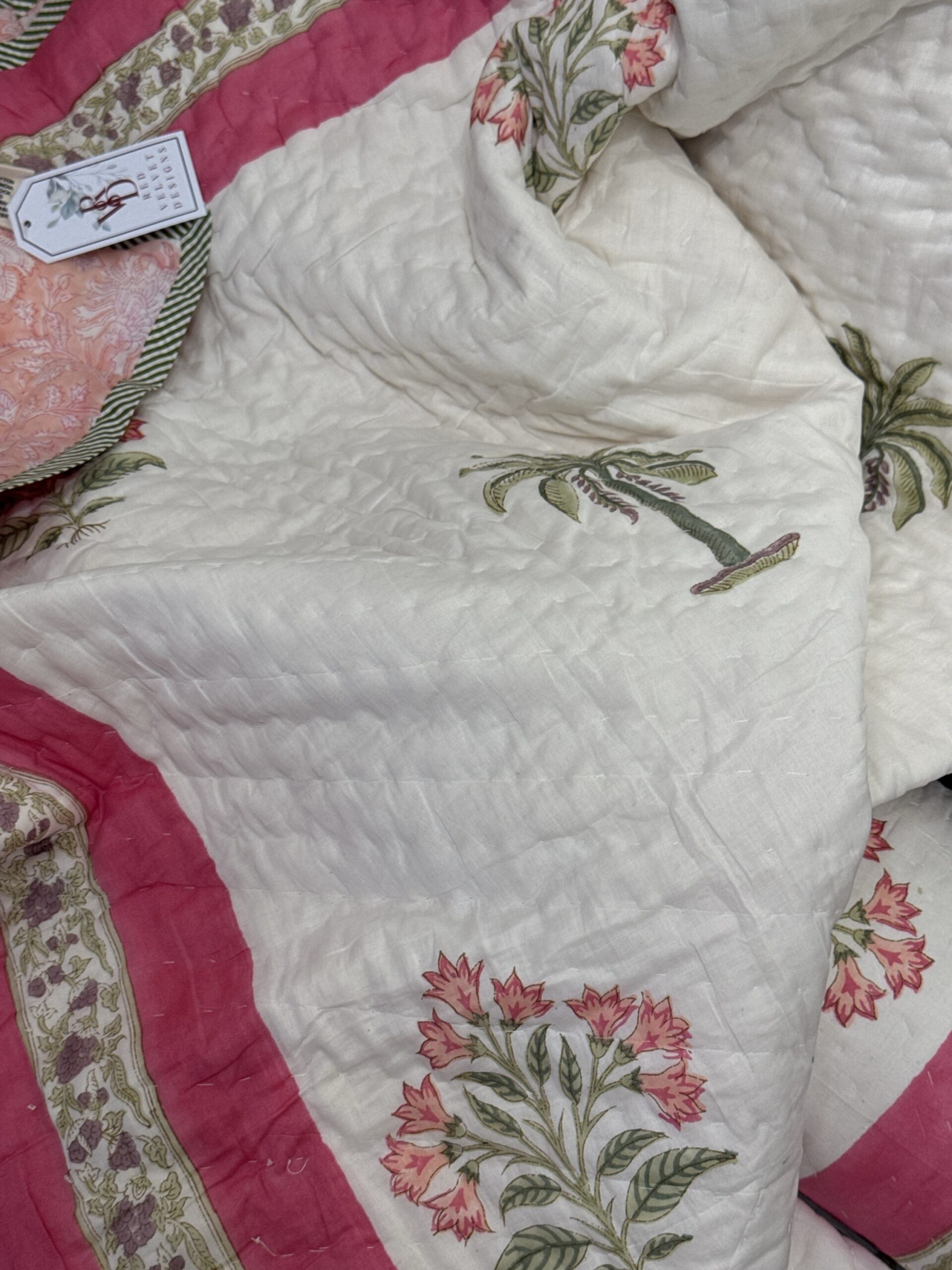 Description: Mulmul is a very fine cotton from India originally only enjoyed by the royals, but now is available for all. Our quilts are hand block printed in organic dyes and carefully crafted for ultimate comfort and satisfaction. The fabric is the best quality keeping in mind the interest of you and your families.